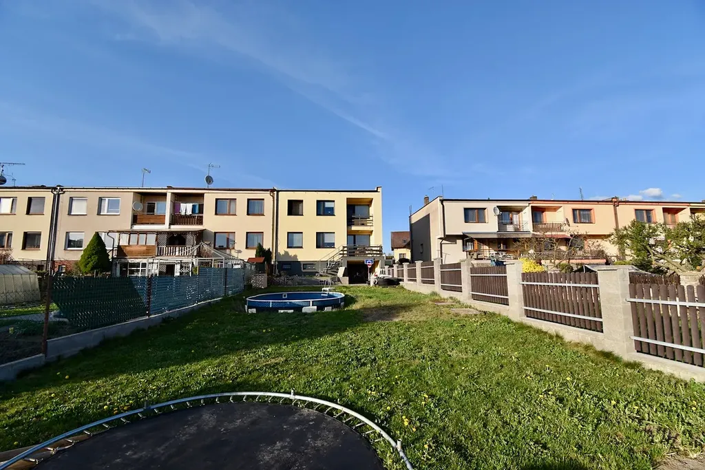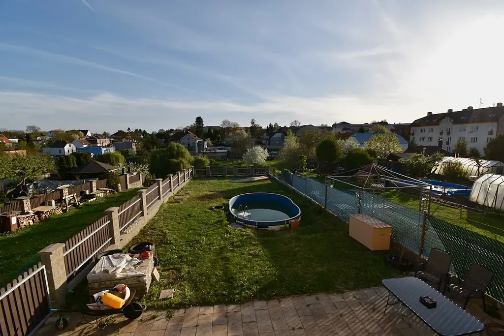 K domu náleží krásná oplocená zahrada o čisté výměře bez zastavěné plochy 253 m2, pod touto zahradou je další pozemek o výměře 193 m2, na kterém je možné postavit menší chatu či domek, který je možné pronajímat nebo využívat pro dalšího člena rodiny.