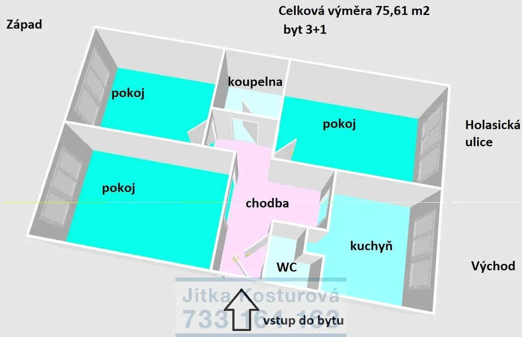 V exkluzivním zastoupení majitele nabízíme ke koupi velmi příjemný byt o dispozici 3+1 a výměře 75,61 m2, který se nachází na adrese Holasická 1159/7 v Opavě. Je umístěn ve zvýšeném přízemí panelového domu o 4 podlažích bez výtahu. Okna z obytných místností jsou orientována východním a západním směrem. V okolí je dostupná veškerá občanská vybavenost. V bytě byla provedena částečná rekonstrukce, okna jsou plastová se žaluziemi, izolační trojskla. Dispozičně byt nabízí 3 samostatné pokoje, prostornou kuchyň, koupelnu s umyvadlem a vanou, samostatné WC s umyvadlem ( rekonstrukce 2013) . Úložné prostory s věšákovou stěnou a botníkem se nachází v předsíni. Kuchyň je vybavena kuchyňskou linkou o stáří cca 12 let, disponuje sklokeramickou varnou deskou, elektrickou troubou a digestoří. Podlaha v bytě je pokryta linoleem, v pokojích jsou původní čtvercové parkety. Interiérové dveře jsou bílé s ocelovými zárubněmi. Vytápění bytu je dálkové. Rozvody elektřiny jsou částečně po rekonstrukci, v bytě je nový rozvaděč. K bytu náleží samostatná sklepní kóje a balkón ve spoluužívání. V domě je k dispozici také společná sušárna a kolárna. Parkovat lze před domem. Celkové náklady činí cca 5500 Kč měsíčně.
