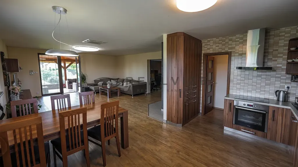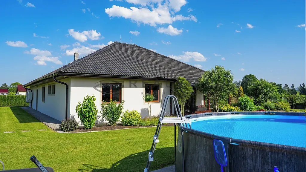 Součástí domu je velká garáž, dostatek parkovacích míst na pozemku a zimní zahrada, která poskytuje skvělý prostor pro relaxaci i v chladnějších měsících. Celý objekt je vybaven podlahovým topením napájeným tepelným čerpadlem a klimatizací pro maximální pohodlí. Díky kvalitním materiálům, ze kterých je dům postaven, je ve vynikajícím stavu.