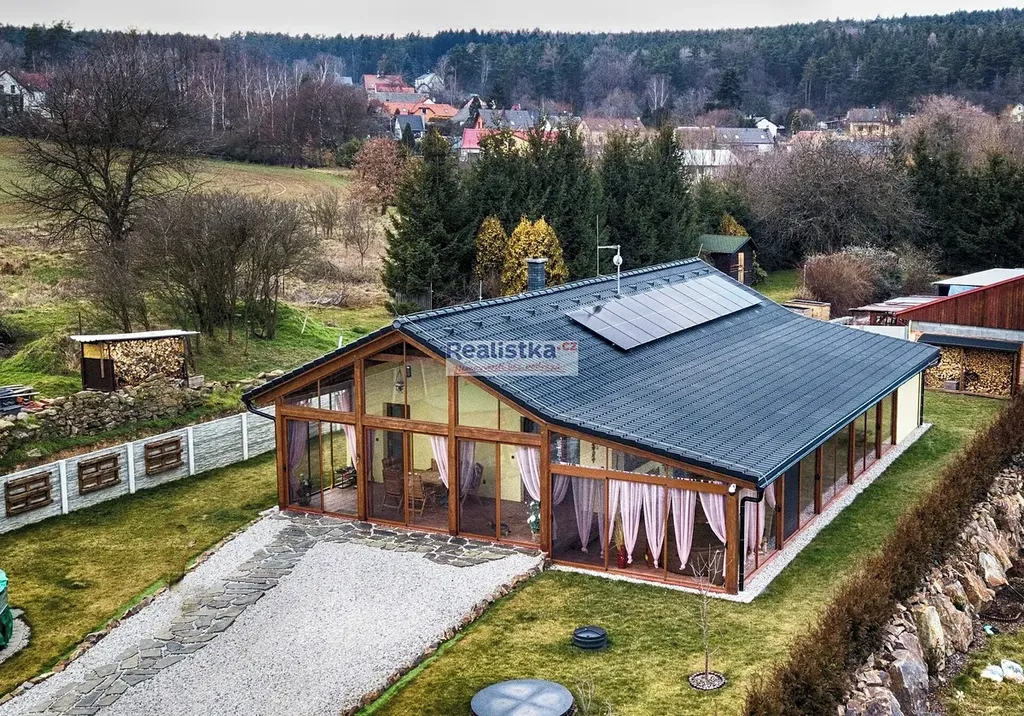 Výjimečným prvkem domu je velká zasklená terasa, orientovaná na jih a východ, která slouží jako celoroční prostor pro relaxaci a volnočasové aktivity.