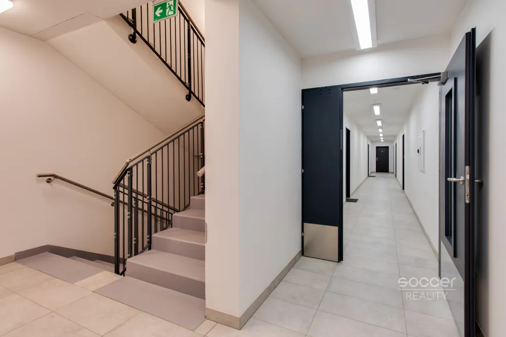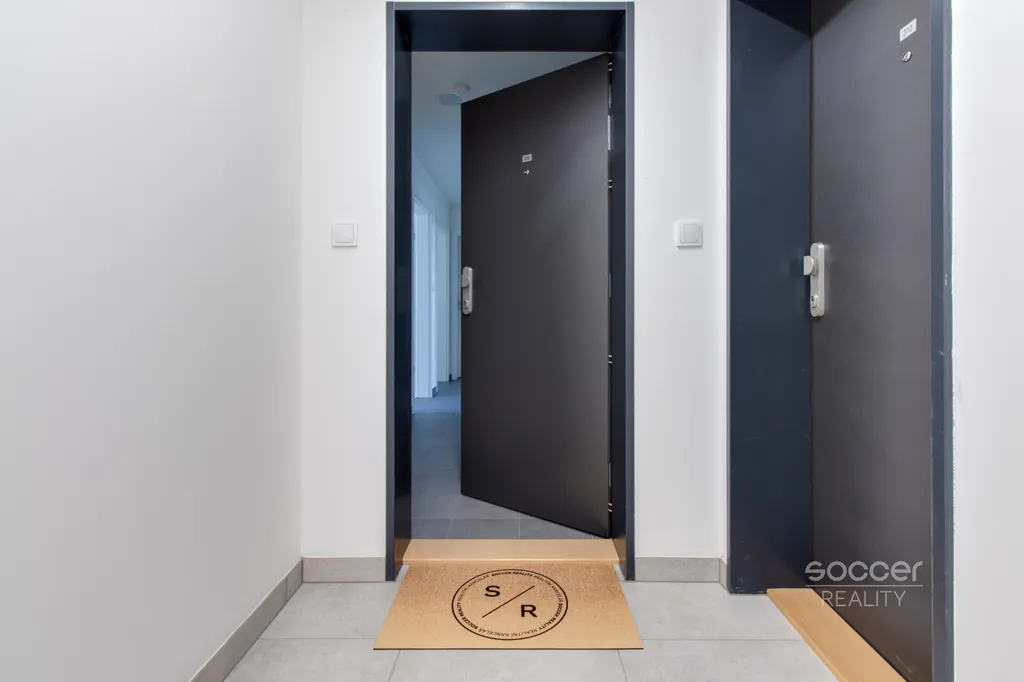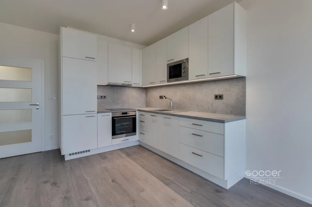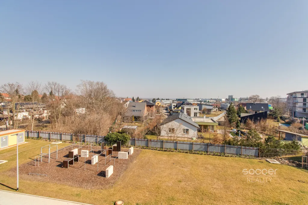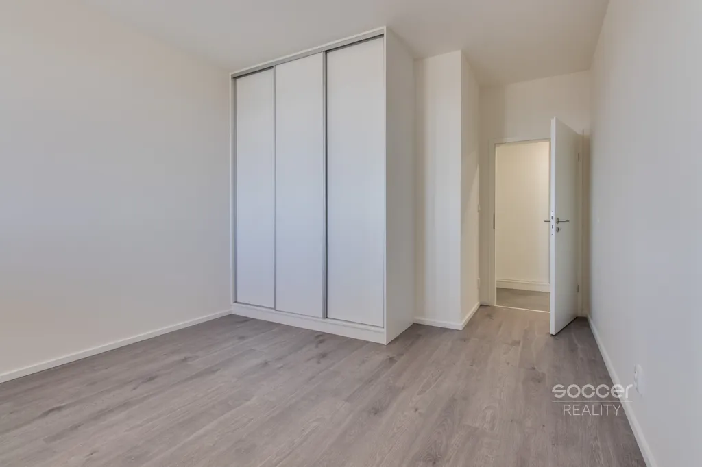 Soccer Reality vám zprostředkuje pronájem bytu v novostavbě dokončené v roce 2024, o dispozici 2+kk a celkové výměře 57 m2, nacházejícího se ve 3. nadzemním podlaží ze 4. Svou výměrou výrazně převyšuje běžné byty o dispozici 2+kk, jejichž podlahová plocha bývá obvykle menší. Byt je nadstandardně vybaven moderní kuchyňskou linkou včetně všech vestavných spotřebičů, v ložnici i na chodbě jsou prostorné vestavěné skříně, které zajišťují dostatek úložného prostoru. Koupelna je moderní, vybavená prostorným sprchovým koutem a je společná s WC. Přípojka na pračku je k dispozici přímo v koupelně. Na podlahách jsou plovoucí podlahy a dlažba. Na oknech jistě oceníte závěsy i záclony. Všechna okna jsou orientována na východ. Na rohový balkon o výměře 8,72 m2 je vstup z obývacího pokoje. Výhled z bytu je velmi příjemný, nikdo vám nebude hledět do oken a narušovat tak vaše soukromí. K bytu náleží také venkovní vyhrazené parkovací stání. Před domem se navíc nachází venkovní fitness zóna.