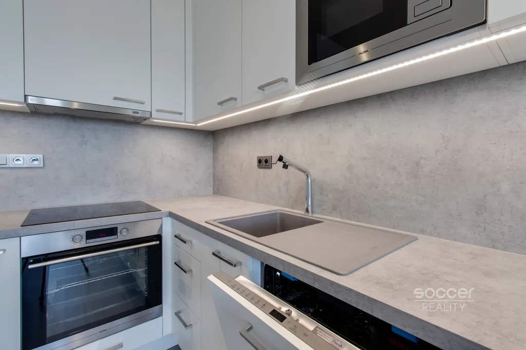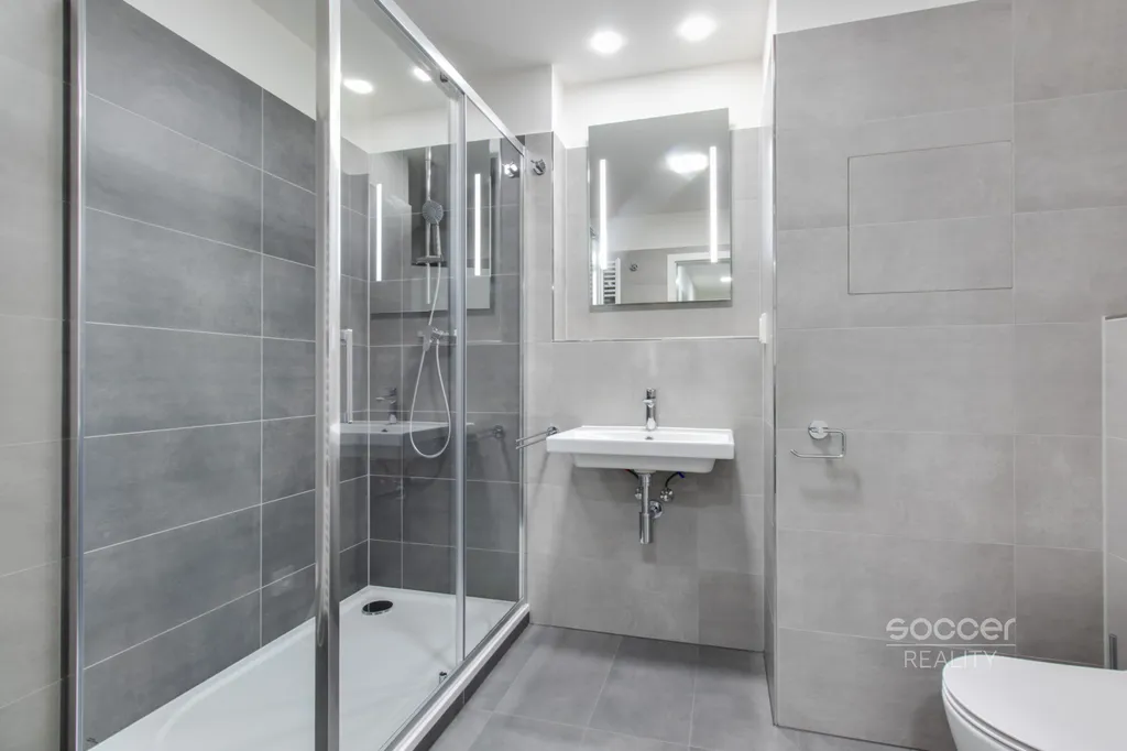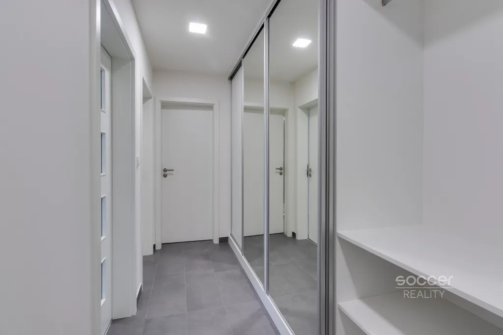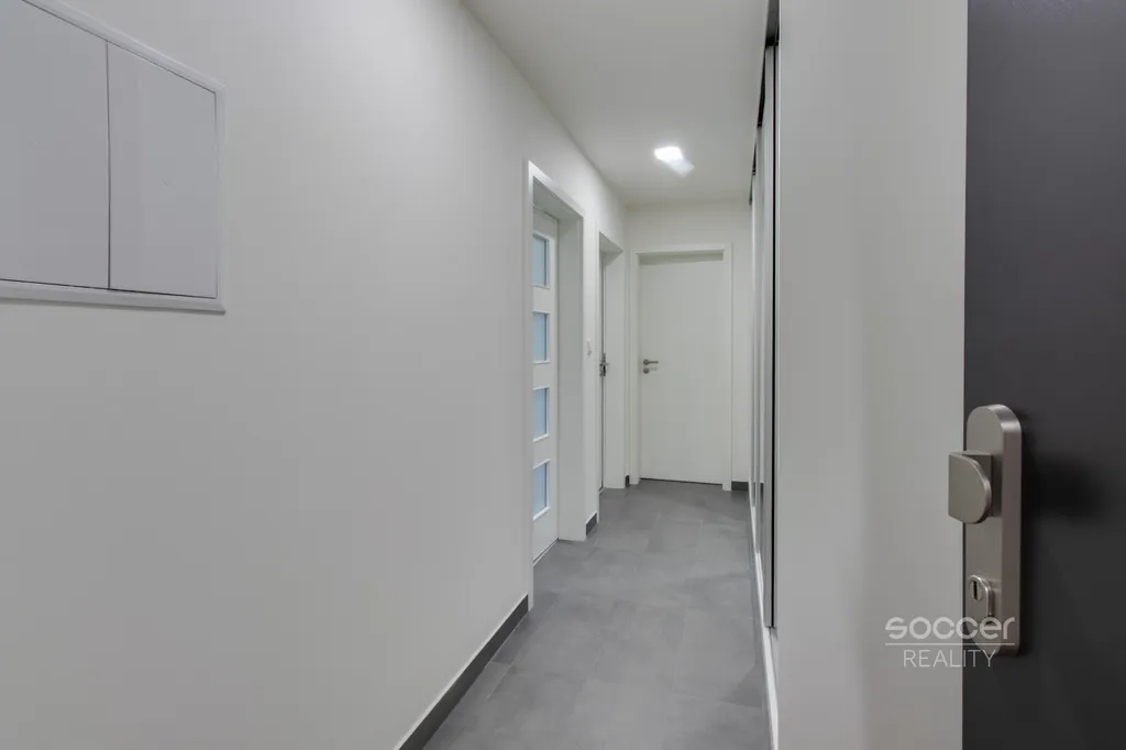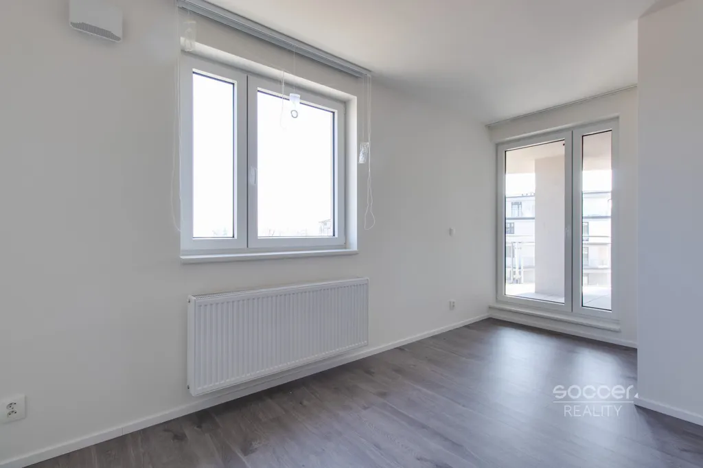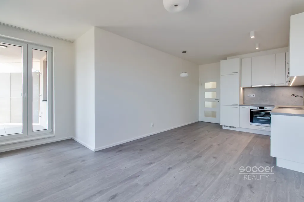 Soccer Reality vám zprostředkuje pronájem bytu v novostavbě dokončené v roce 2024, o dispozici 2+kk a celkové výměře 57 m2, nacházejícího se ve 3. nadzemním podlaží ze 4. Svou výměrou výrazně převyšuje běžné byty o dispozici 2+kk, jejichž podlahová plocha bývá obvykle menší. Byt je nadstandardně vybaven moderní kuchyňskou linkou včetně všech vestavných spotřebičů, v ložnici i na chodbě jsou prostorné vestavěné skříně, které zajišťují dostatek úložného prostoru. Koupelna je moderní, vybavená prostorným sprchovým koutem a je společná s WC. Přípojka na pračku je k dispozici přímo v koupelně. Na podlahách jsou plovoucí podlahy a dlažba. Na oknech jistě oceníte závěsy i záclony. Všechna okna jsou orientována na východ. Na rohový balkon o výměře 8,72 m2 je vstup z obývacího pokoje. Výhled z bytu je velmi příjemný, nikdo vám nebude hledět do oken a narušovat tak vaše soukromí. K bytu náleží také venkovní vyhrazené parkovací stání. Před domem se navíc nachází venkovní fitness zóna.