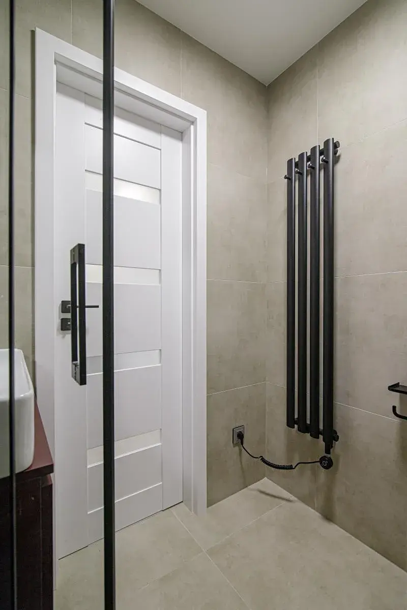- Koupelna se sprchovým koutem, wc a topným žebříkem