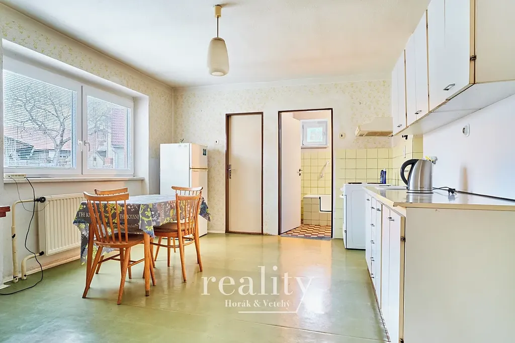 Rodinný dům - jde o dvoupodlažní podsklepený RD z roku 1977 o výměře 209m2, který tvoří hlavní dominantní část. V 1.NP je bytová jednotka o dispozici 3+1, v 2.NP jsou samostatné 2 pokoje + navazující půdní prostor v rámci jednoho podlaží a balkón. Konstrukce jsou smíšené, obvodové zdivo je z plných cihel, stropní konstrukce hurdiskové, v podkroví dřevěné trámové, okna izolační dvojskla. Součástí sklepu je garáž + technické místnosti. Exteriér a konstrukce nemovitosti jsou zachovalé, interiér odpovídá svému stáří, ale nabízí velkorysé bydlení. V přiložené fotogalerii máte možnost se podívat na možné vizualizace budoucího stavu.