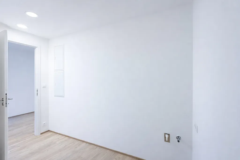 Ale pokud se chcete stěhovat ve dvou, oceníte spíš velikou lodžii přes oba pokoje, orientaci do zeleného vnitrobloku, prostornou komoru na pračku/sušičku a odkládání zbytných věcí.