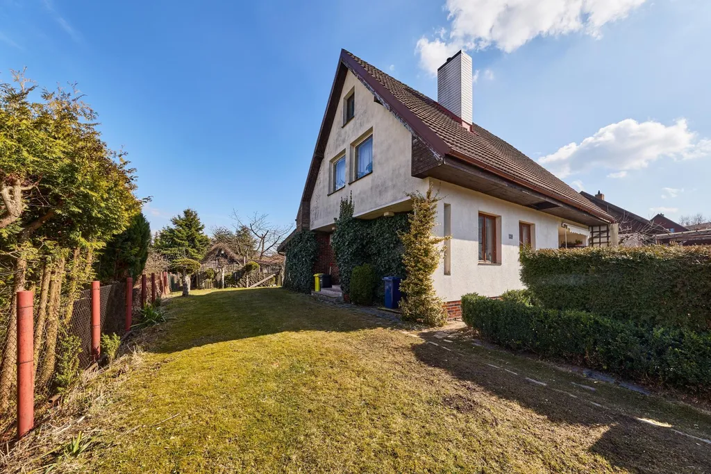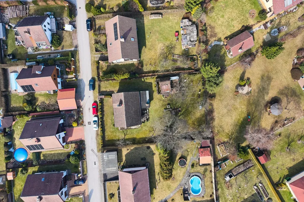 Za domem se nachází udržovaná zahrada s výměrou 879 m2, s vysázenými okrasnými a ovocnými stromy a květenou. Celý pozemek je oplocen, v přední části se vstupní brankou a vjezdovou bránou.