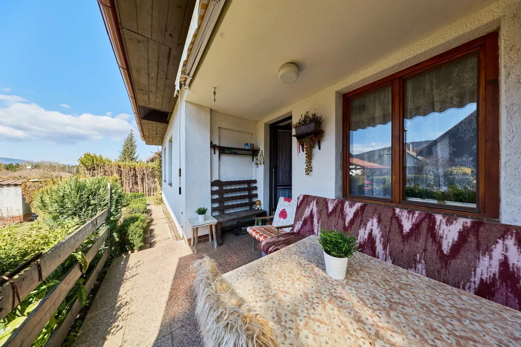 Přízemí: zádveří, velký obývací pokoj se vstupem na terasu, kuchyně, jídelna, koupelna s WC, dílna dříve užívaná jako garáž.