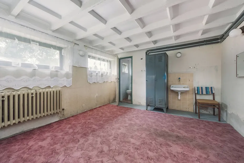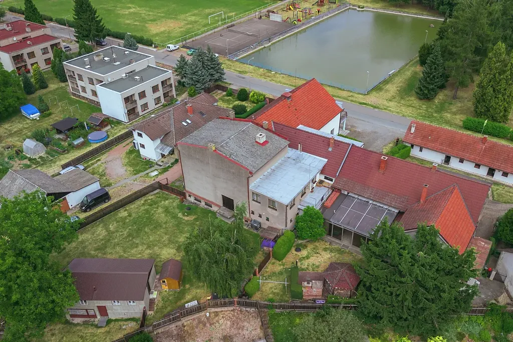 Představuji vám rozlehlou nemovitost se zajímavým potenciálem využití. Budova se nachází v centru obce a většinu její plochy tvoří velký sál s jevištěm - bývalý obecní "kulturák". Na něj navazuje hospoda o rozloze 132 m2, která je stále v provozu a nad ní najdete byt s plochou 107 m2 s balkonem 14 m2, který je nyní pronajímán (na fotkách není, uvidíte ho při prohlídce). Součástí je i pozemek před domem, který poslouží jako parkoviště a menší pozemek za domem. Oba s celkovou rozlohou cca110 m2. Pod jevištěm se nachází sklepy a kotelna. Hospoda a byt jsou vytápěny plynovými kotli a sál kotlem na tuhá paliva. Stavba je v celkově dobré kondici a jeví se vhodnou na případnou přestavbu na bytový dům. Kousek od obce je nájezd na dálnici, takže do Hradce, Pardubic, či Prahy dojedete snadno a rychle. Ať již je váš záměr jakýkoliv, rád si ho poslechu. Takže vemte kámoše a přijeďte do Klamoše.