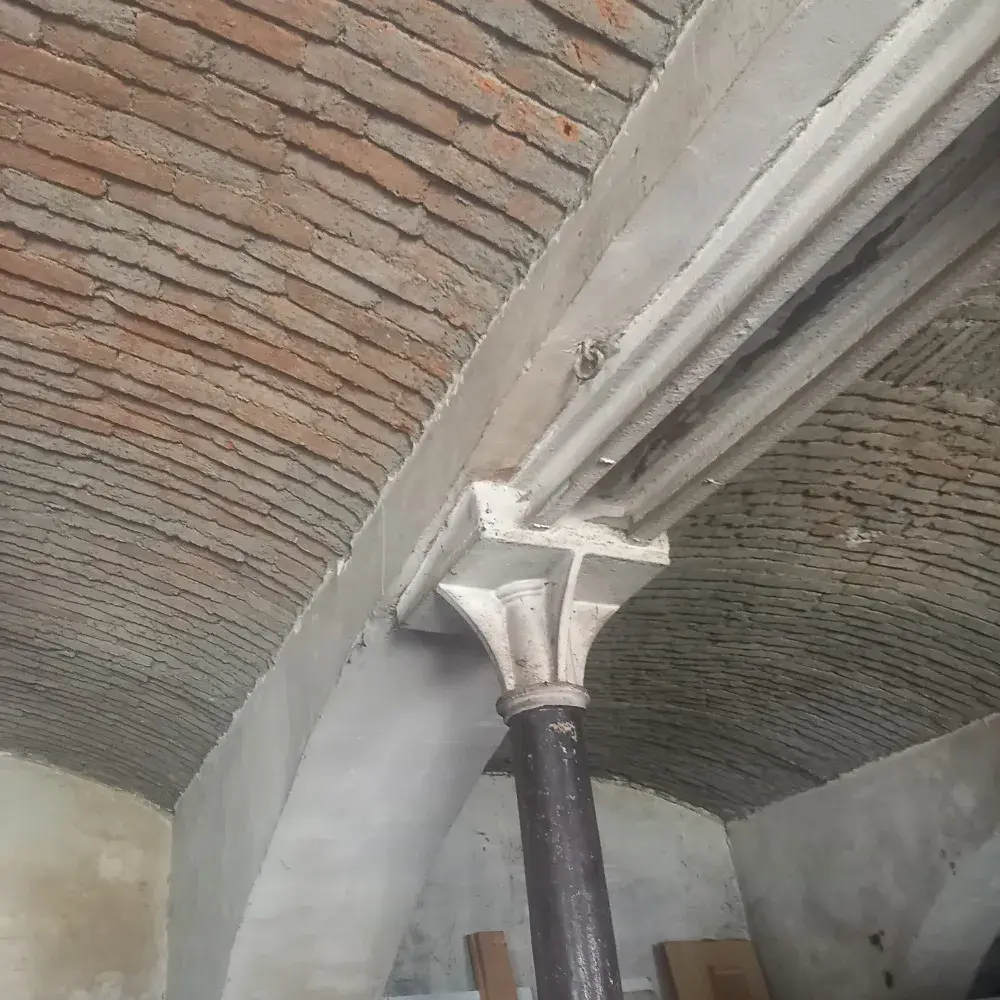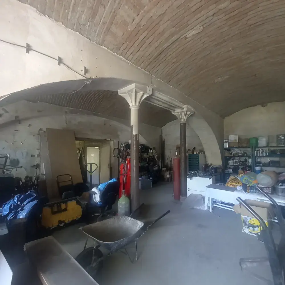 Druhá budova - Přízemí budovy je v zachovalém stavu s historickými ozdobnými kovovými sloupy se třemi klenbami. Světlá výška přízemí je 4 m. Zastavěná plocha je 211 m2. Stavba je kombinace cihly a kamene.