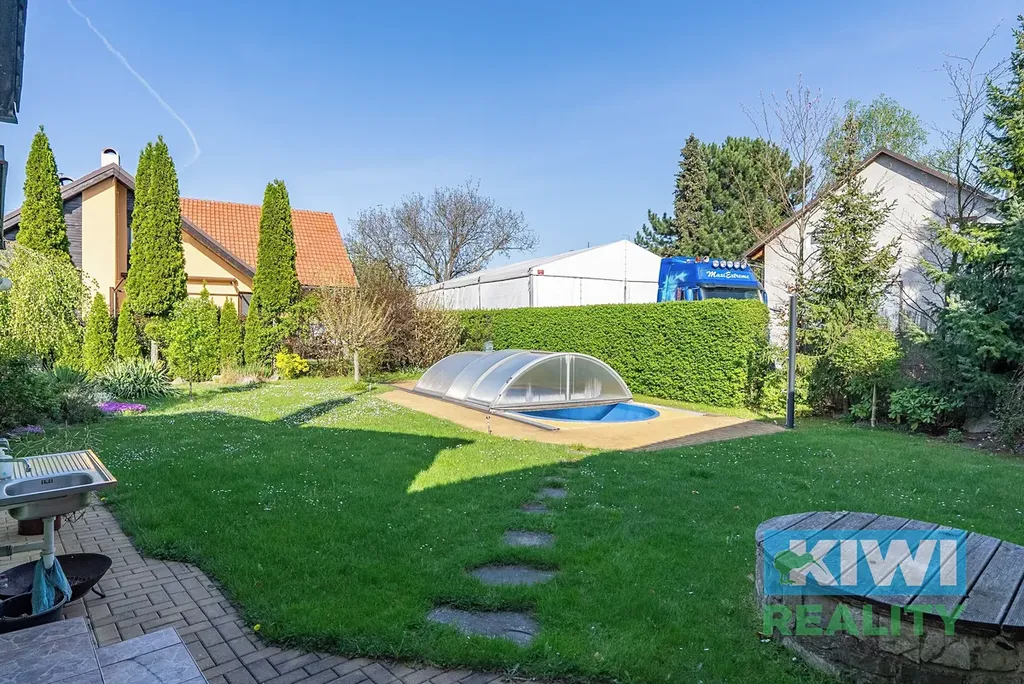Velkou přidanou hodnotou je krytý bazén, který poskytne osvěžení a relax během letních měsíců, zatímco pečlivě udržovaná zahrada vytvoří ideální prostor pro grilování, hry dětí či odpočinek s knihou ve stínu stromů.