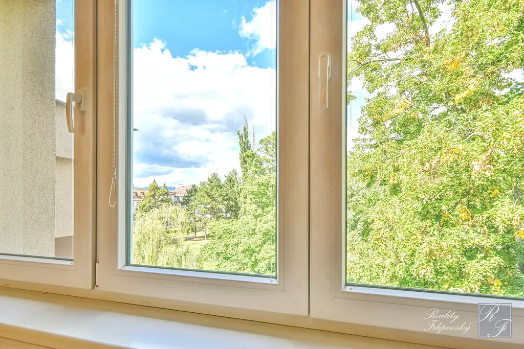 Bytová jednotka je aktuálně nově vymalována a jsou zbroušeny parketové podlahy. V nedávné době byla zrekonstruována koupelna, toaleta i kuchyně. Ta je vybavena elektrickou troubou, plynovou varnou deskou i myčkou nádobí.