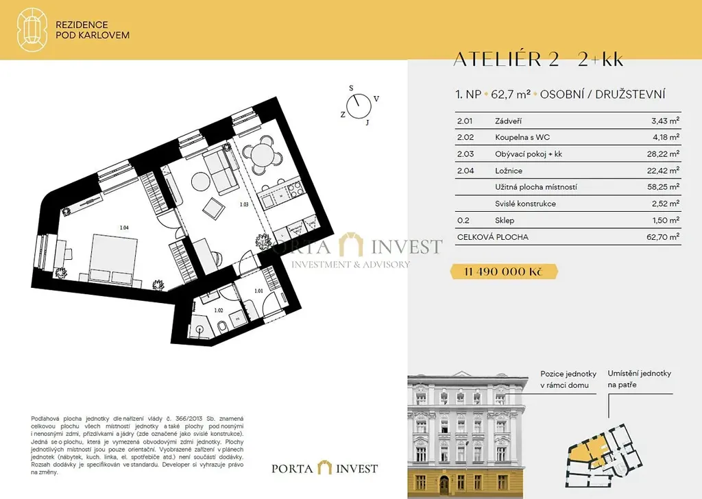 Hledáte výjimečné bydlení, které spojuje prestižní adresu, velkorysý prostor a dech beroucí výhledy? Objevte unikátní ateliér 2+kk o rozloze 61,2 m² v exkluzivní Rezidenci Pod Karlovem.