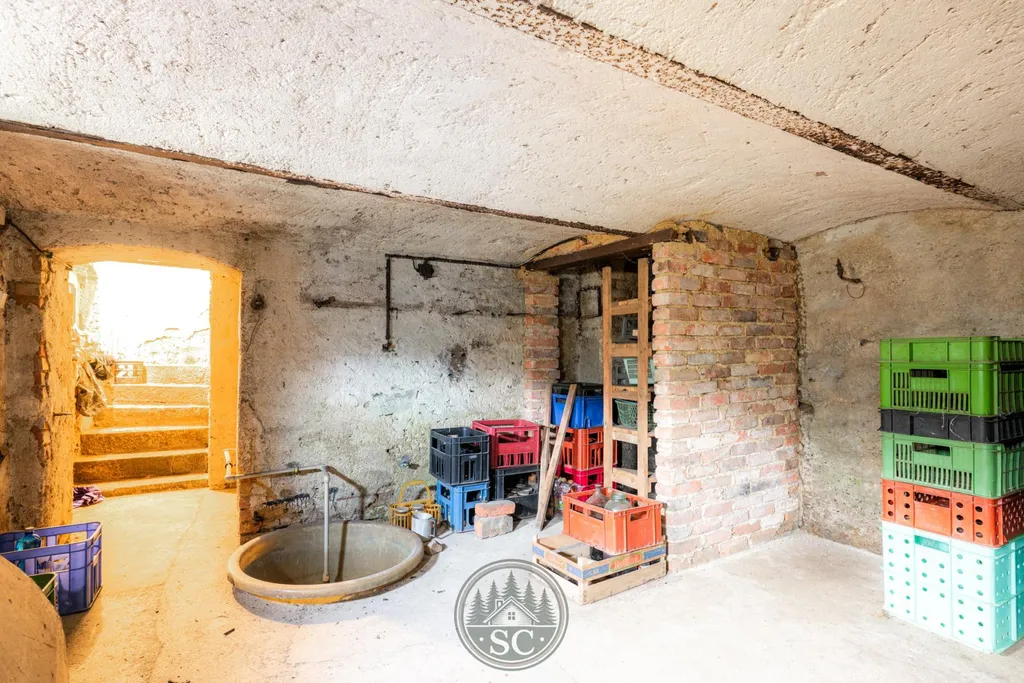 Součástí domu je také prostorná půda a suchý sklep, který nabízí ideální zázemí pro uskladnění zeleniny či jiných zásob.