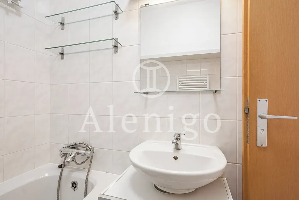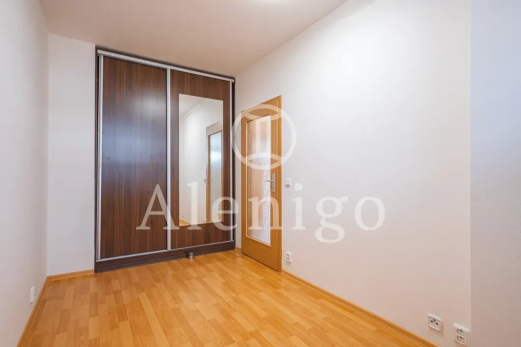 Dům je po renovaci společných prostor. Terasa a obývací pokoj jsou orientovány na jih, z terasy je volný výhled do zeleně (na vlastní pozemek, patřící k bytu). Ložnice a kuchyně jsou orientovány na západ. Kuchyňská linka se sporákem a lednicí. Topení je řešeno vlastním elektrokotlem. V koupelně se nachází vana. Toaleta s vlastním umyvadlem je řešena samostatně. Součástí bytu je také praktická komora v bytě a garážové stání v 1. podzemním podlaží. Měsíční náklady jsou cca 4.500,- Kč + elektřina.