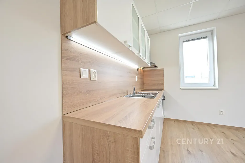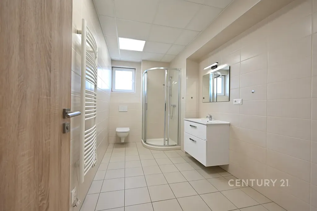 Interiér je připraven k nastěhování podle vašich představ. Byt se pronajímá bez nábytku, k dispozici je však nová kuchyňská linka se sklokeramickou deskou a elektrickou troubou. Koupelna je prostorná a prakticky řešená – sprchový kout, umyvadlo, toaleta i přípojka na pračku.