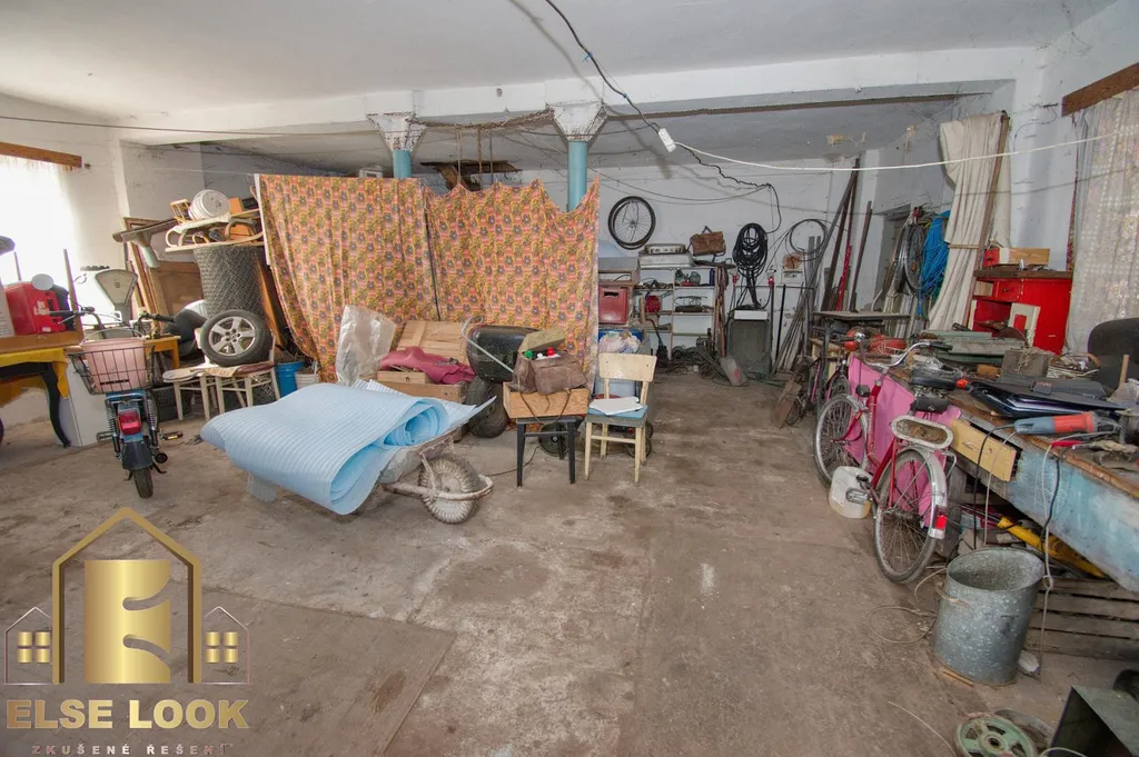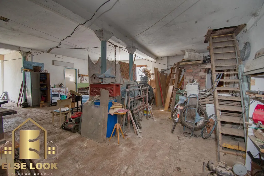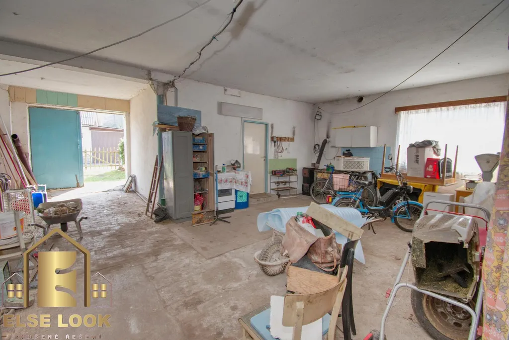 V přízemí se nachází menší místnost bývalé kanceláře s kuchyní (16 m²) a prostorná dílna (celková plocha přízemí 102 m and sup2;), vjezdovými vraty ( 2,38 m × 2,48 m) a samostatným vstupem z boku budovy dvoukřídlými dveřmi; výška místnosti je 2,88 m. Dřevěné schody vedou do půdního prostoru o ploše 73 m², vhodného pro obytnou část s výškou k vazním trámům 2,95 m. Objekt je veden jako jiná stavba a je napojen na elektřinu (400 V, 35 A, 3fázový jistič), přípojka vody z vodovodního řádu je poblíž budovy.