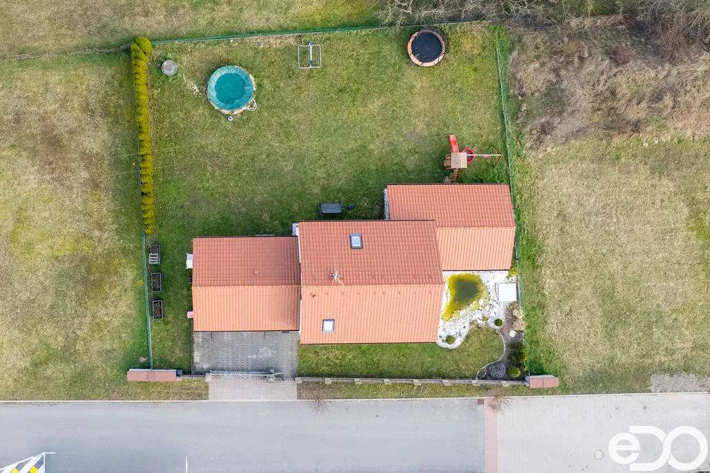 Pozemek nabízí udržovanou zahradu s jezírkem, které dodává celému místu příjemnou atmosféru a pocit soukromí.