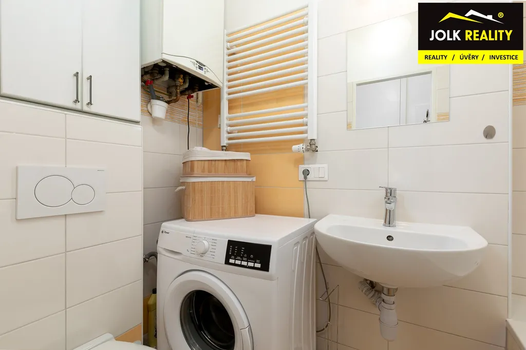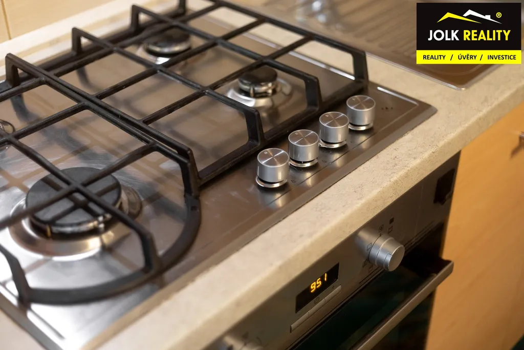 Rekonstrukce v r. 2017 vybídla k instalaci elegantní kuchyňské linky včetně vkusně upravené koupelny s WC.