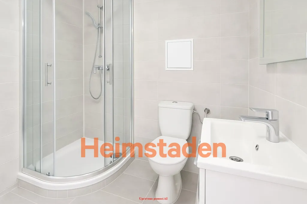 Koupelna nabízí vkusné a praktické řešení – prostorný sprchový kout, toaletu a dostatek místa pro pračku i sušičku. Vše v moderním provedení, které splňuje nároky dnešního bydlení.
