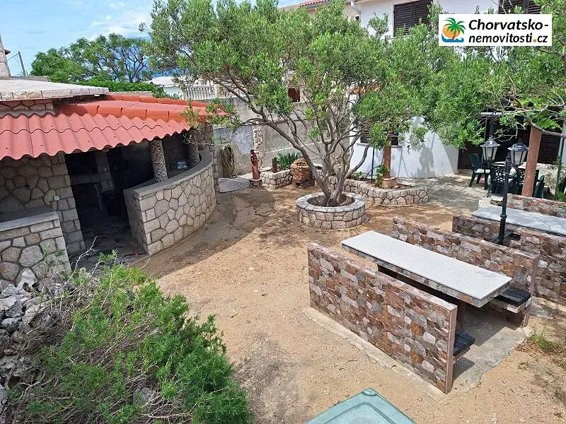 Za domem je společný gril a místo pro posezení.