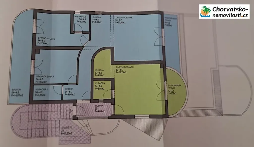 Chorvatsko-Nemovitosti.cz nabízí velký třípokojový apartmán 80m2 (S4) v prvním patře bytového domu s výhledem na Pažskou bránu, ve městě Pag