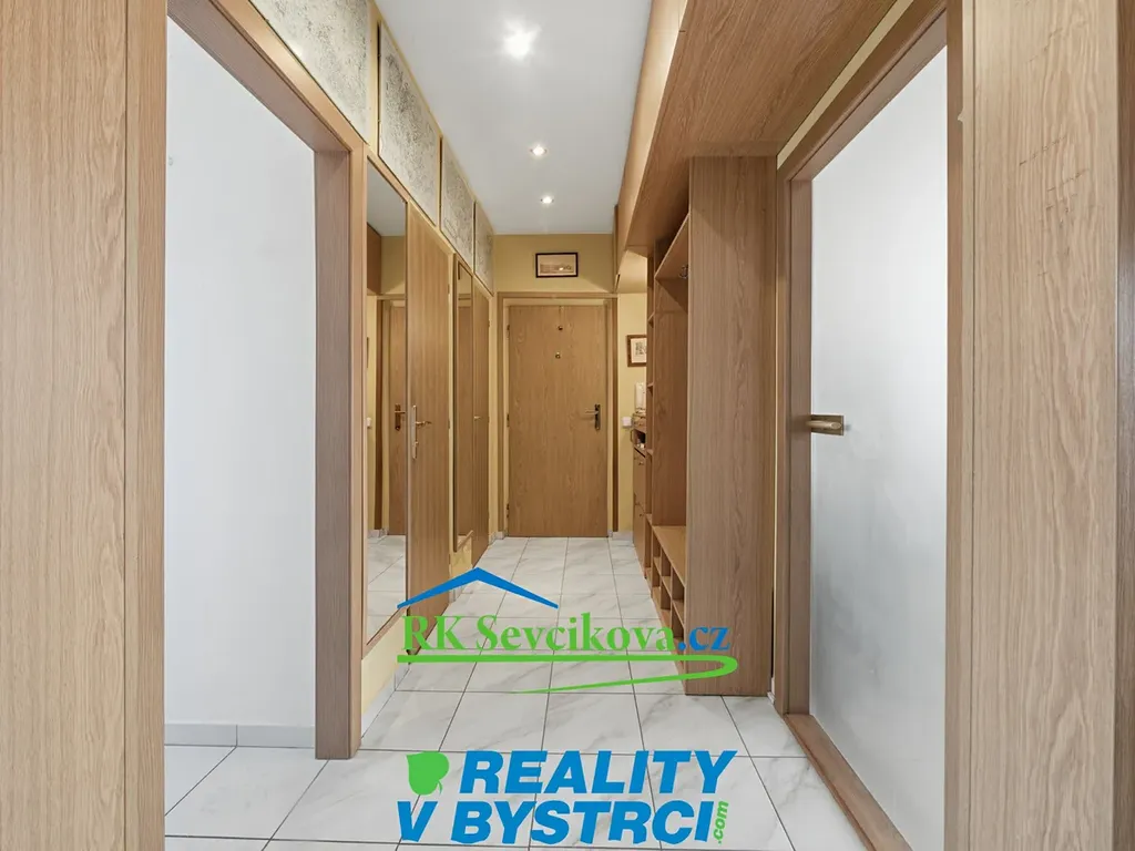 Předsíň disponuje úložným prostorem s botníkem, vest. skříně, věšáky.