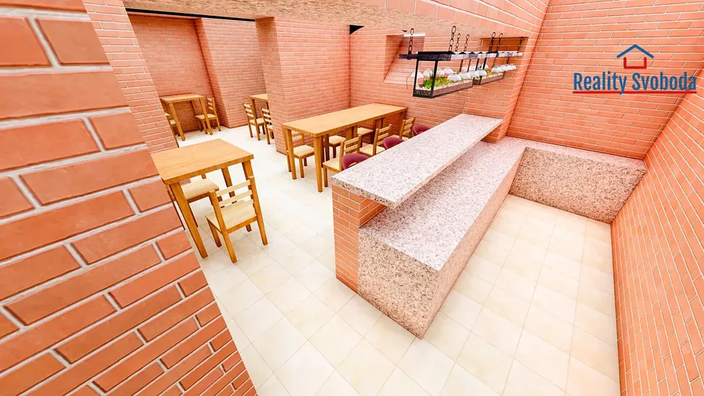 Momentálně jsou prostory v procesu rekonstrukce a další úpravy budou probíhat po dohodě s budoucím nájemníkem, podle toho, jaké bude zaměření činnosti. Přiložené obrázky slouží jako ukázka toho, jak by mohl prostor vypadat.