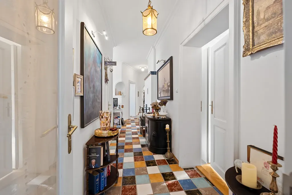 Vila je rozdělena na dvě samostatné jednotky. V přízemí se nachází reprezentativní vstupní hala se schodištěm inspirovaným zámkem Hluboká, obytné místnosti a samostatná bytová jednotka se vstupem zvenku. V patře je byt s novým kuchyňským koutem, ložnicí, šatnou, koupelnou po rekonstrukci, samostatným WC, spíží a lodžií. K dispozici je také podkroví vhodné k vestavbě a částečné podsklepení.