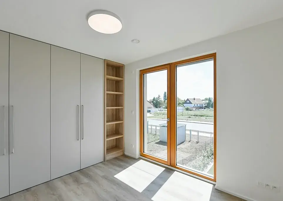 Standard domu výrazně převyšuje běžnou nabídku na trhu. Samozřejmostí je podlahové vytápění, rekuperace, chlazení, tepelné čerpadlo IVT, a inteligentní systém ovládání domácnosti, který umožňuje vzdáleně řídit komfort celého domu s maximální jednoduchostí. Atmosféru doplňují dřevěná Euro okna, elektricky ovládané předokenní žaluzie a kvalitní materiály v podobě vinylových podlah a dlažby. Velkoryse řešené vestavěné úložné prostory v každé místnosti jsou citlivě integrovány tak, aby nenarušovaly čistý design interiéru. Detail, který oceníte při každodenním užívání, představuje inteligentně řešené osvětlení chodeb s automatickým spínáním, jež nenápadně přispívá k celkovému komfortu a nadstandardu bydlení.