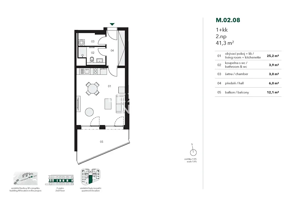 Nabízíme k pronájmu nezařízený, zcela nový, dosud neobývaný moderní byt 1+kk o velikosti 41,3 m² s balkonem 12,1 m², situovaný ve 2.NP domu v projektu Timber Praha s výtahem. Nemovitost se nachází v krásné lokalitě Prahy 5 - Stodůlky disponující veškerou občanskou vybaveností a výbornou dopravní infrastrukturou.