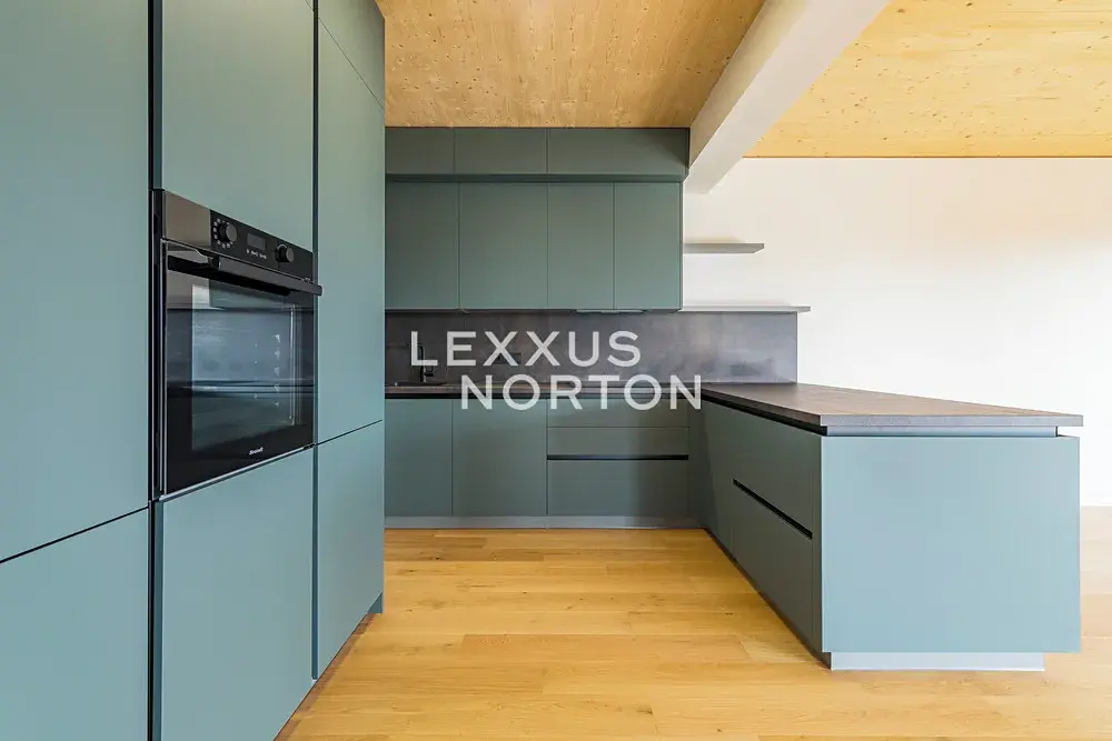 Kuchyňský kout je vybavený indukční varnou deskou, troubou, lednicí s mrazákem a myčkou nádobí. Vstupní chodba disponuje vestavěnou skříní. Byt dále disponuje moderním smart home systémem Loxone, který umožňuje mimo jiné inteligentní ovládání venkovních žaluzií, regulaci podlahového vytápění a chlazení v každé místnosti či monitorování spotřeby vody a energie.