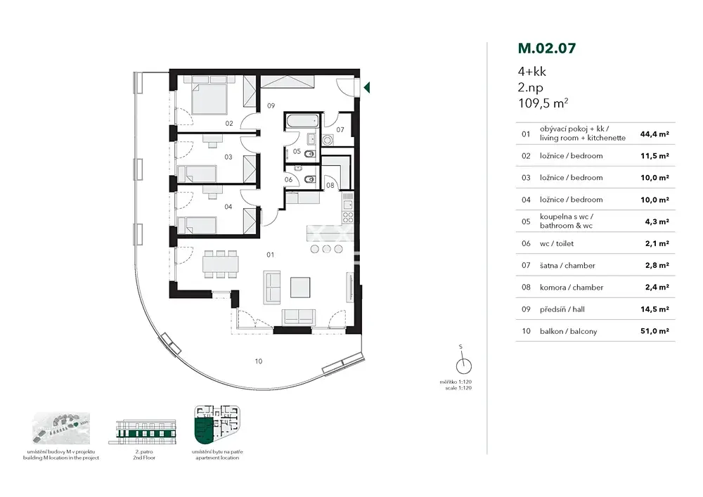 Nabízíme k pronájmu nezařízený, zcela nový, dosud neobývaný moderní byt 4+kk o velikosti 109,5 m² s balkonem 51 m², situovaný ve 2.NP domu v projektu Timber Praha s výtahem. Nemovitost se nachází v krásné lokalitě Prahy 5 - Stodůlky disponující veškerou občanskou vybaveností a výbornou dopravní infrastrukturou.