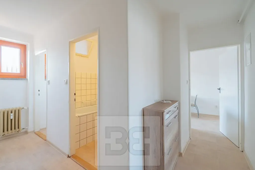 Byt nabízí velmi praktické a vzdušné dispoziční řešení. K dispozici je samostatná kuchyně, průchozí obývací pokoj a samostatná ložnice.