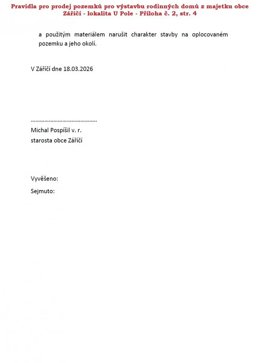 Záměr prodeje pozemků - Obec Záříčí