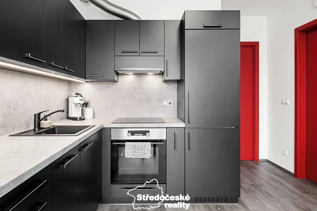 - moderní kuchyňská linka se spotřebiči (myčka, vestavěná lednice, indukční deska, trouba)