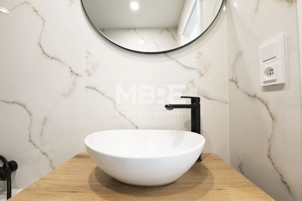 Najdete zde novou kuchyňskou linku s vestavnou troubou, varnou deskou a digestoří., nové podlahy. Koupelna je moderní a vybavená vanou, novými obklady, umyvadlem se skříňkou a WC.