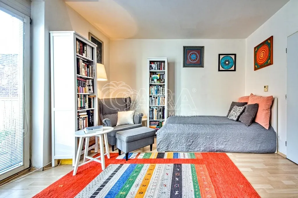Hledáte k pronájmu malý byt v příjemném prostředí? Nabízíme Vám tento praktický byt o dispozici 1+kk (29 m2) ve 2. patře nízkopodlažního domu, navíc ještě s velkým balkónem (5 m2) a prostorným sklepem (4 m2). Orientace bytu je na východ do klidného rezidenčního prostoru. Tento vydařený bytový projekt v uzavřeném areálu nízkopodlažních domů na Vás dýchne mimořádně klidnou a pohodovou atmosférou. Součástí pronájmu je také jedno venkovní parkovací stání pro Váš automobil, umístěné za závorou na střeše objektu garáží.