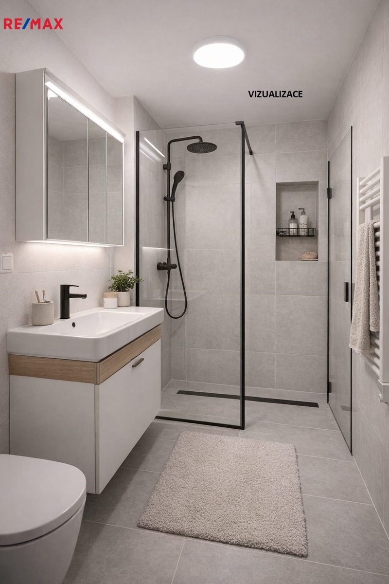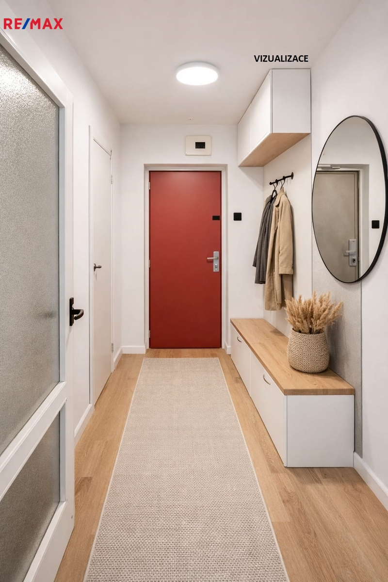 Byt je v původním stavu před rekonstrukcí, což představuje ideální příležitost vytvořit si bydlení přesně podle vlastních představ, a to jak moderním designem, tak možnou změnou dispozice. Přiložená vizualizace místností je pouze ilustrativní.