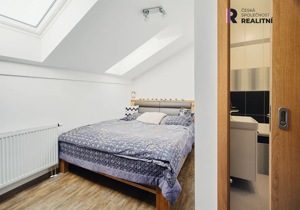 Okna: Osazena izolačními trojskly pro maximální tepelný a akustický komfort. Střešní okna disponují venkovními roletami.