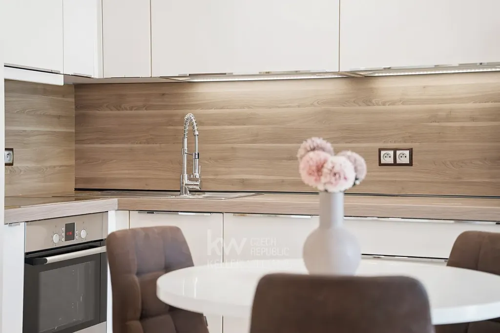 Styl a komfort bez starostí: Byt se pronajímá kompletně a vkusně vybavený. Stačí si jen vybalit kufry a začít bydlet – klíče můžete mít v ruce třeba hned.