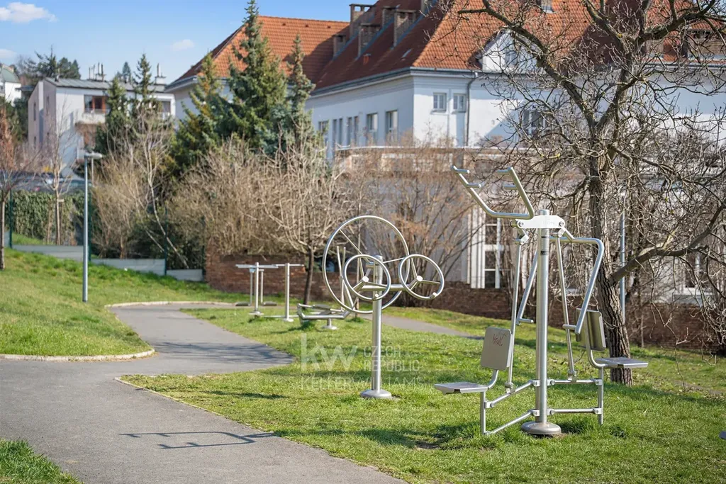 Praktickou stránku bydlení doplňuje přilehlý park vybízející k procházkám, vlastní parkovací místo a sklep zahrnutý v ceně nájmu.