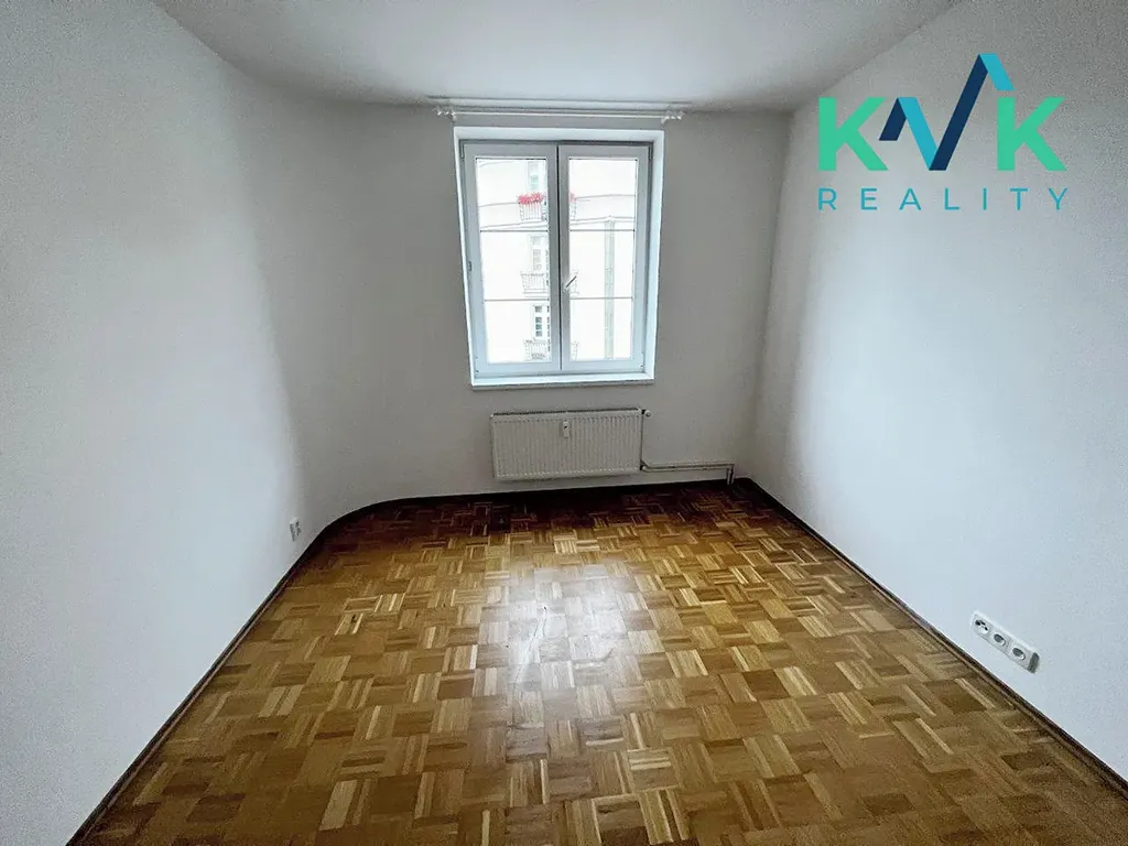 umístěn rozměrný kuchyňský kout s kuchyňskou linkou. Byt je bez dalšího vybavení nábytkem. V obou pokojích jsou položeny dubové parkety. Byt je vytápěn