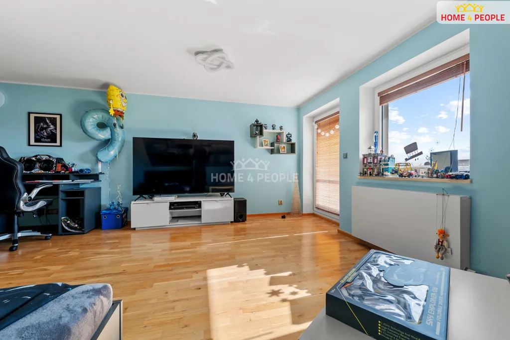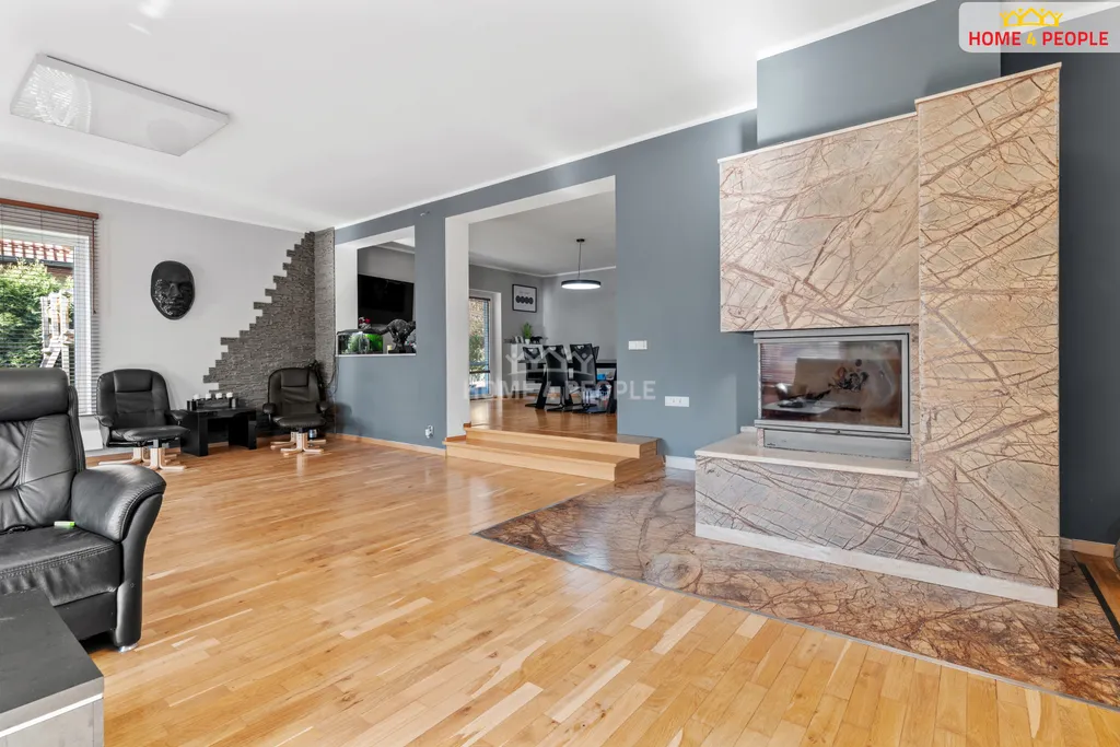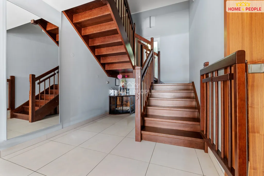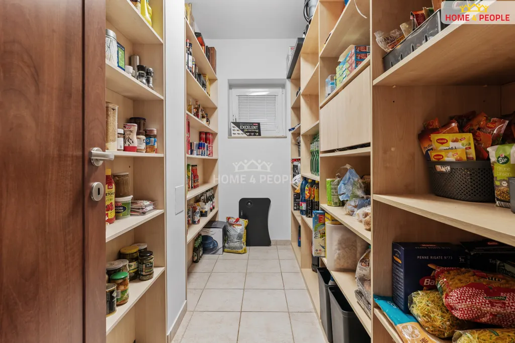 V přízemí domu vstoupíte do prostorné haly, kde se nachází prostorná technická místnost, koupelna s WC, velký obývací pokoj s krbem se vstupem na zahradu, moderní kuchyň s prostornou jídelnou a praktický sklad, pokoj pro hosty. Dřevěné schodiště Vás dovede do prvního patra, kde je umístěna ložnice se šatnou s vestavnými skříněmi pro uložení všech věcí a samostatnou koupelnou. Dále najdeme další 3 pokoje, kde v jednom z nich se opět nachází šatna, na chodbě je koupelna s WC a komora, vstup na půdu, která též pojme spoustu sezónních věcí.