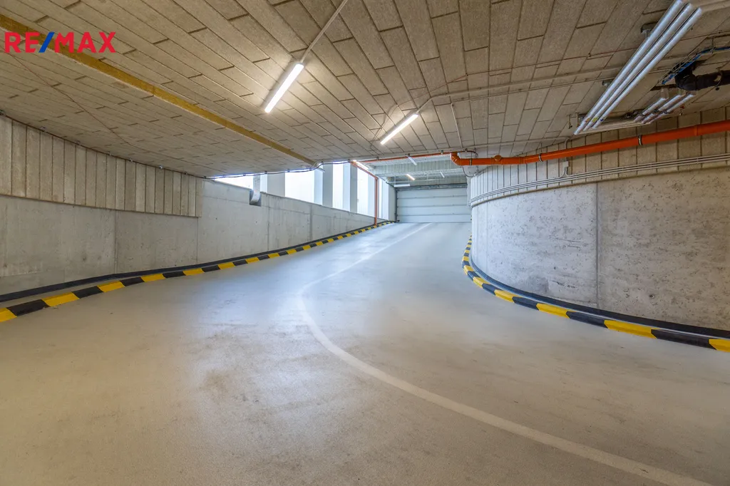 Vjezd do garáže je přes automatická vrata na dálkové ovládání, přístup mají pouze vlastníci a nájemci objektu.