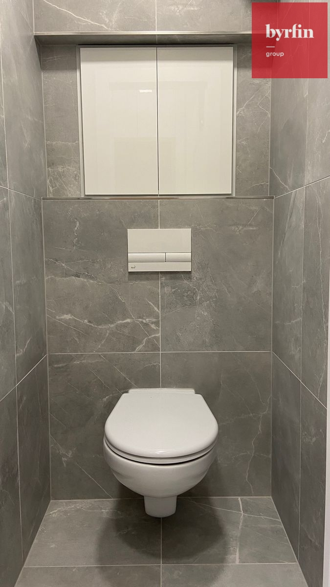 V bytě jsou sádrové omítky, moderní plovoucí podlaha v dekoru Dub Halifax, bezfalcové kvalitní dveře vč. obložkových zárubní. Koupelna je v designu šedého mramoru, doplněno o dřevěný dekor. Wc je samostatně. V předsíni je na míru vyrobená vestavná skříň - vhodná na boty a oblečení.