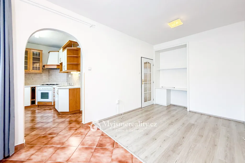 Nabízíme k pronájmu prostorný byt o dispozici 3+1 a výměře 70 m², situovaný ve 2. podlaží. Dispozici tvoří předsíň s vestavěnou šatní skříní, ložnice s klimatizací, obývací pokoj a kuchyně propojená klenbou s vedlejším pokojem, který může sloužit jako velkorysá jídelna nebo další pokoj. Nechybí koupelna a samostatné WC. Vytápění zajišťuje plynový kotel, který společně s elektrickým bojlerem efektivně spolupracuje na ohřevu vody.