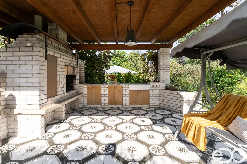 Zahrada je osázena vzrostlými stromy a nabízí bohatou úrodu – k dispozici jsou jabloně, broskvoně i keře s malinami a ostružinami. Součástí je také pergola pro příjemné posezení a bazén, který oceníte zejména v letních měsících.