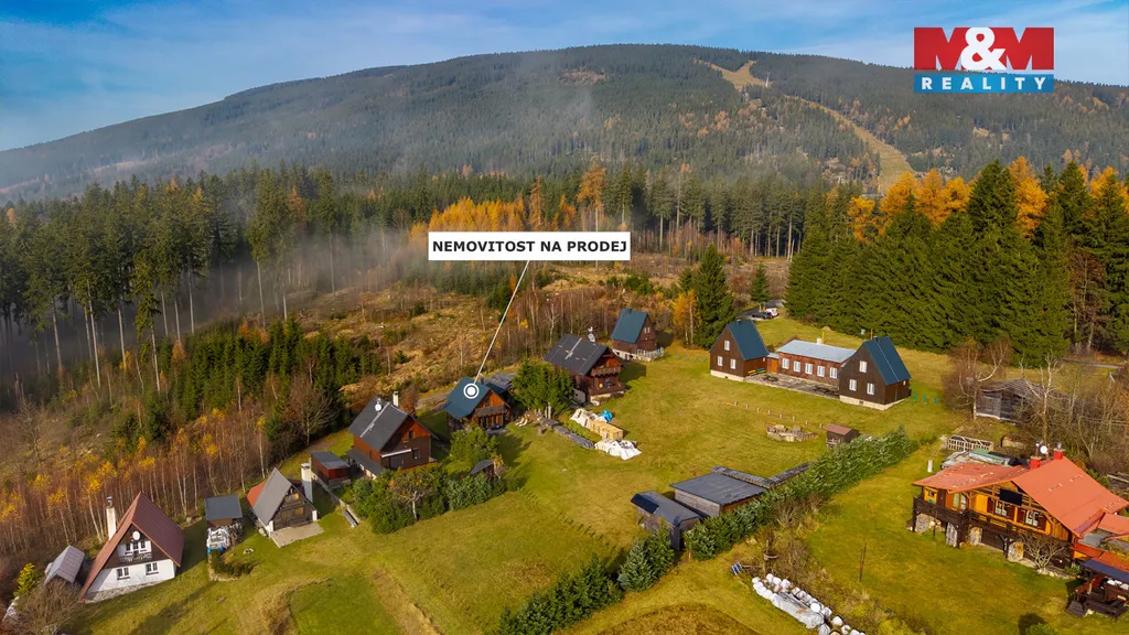 Na prodej je rodinný dům ve stylu horské chaty v naprosto výjimečné lokalitě Zlatá vyhlídka, jednom z nejžádanějších míst celých Krkonoš. Nemovitosti se tu objevují jen vzácně, protože kdo tu jednou bydlí či rekreuje, získá výhody, které jinde jednoduše neexistují. Díky poloze téměř nepotřebujete auto: lyže si obujete doma v teple, od chaty sjedete přímo na sjezdovku a na lanovku Černá hora dojedete během pár minut. Stejně tak nasadíte běžky hned u domu. Pěšky dojdete ke Stezce korunami stromů, dětským atrakcím, wellness, restauracím i hlavním turistickým trasám začínajícím doslova za plotem.