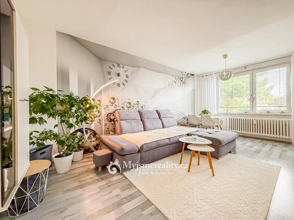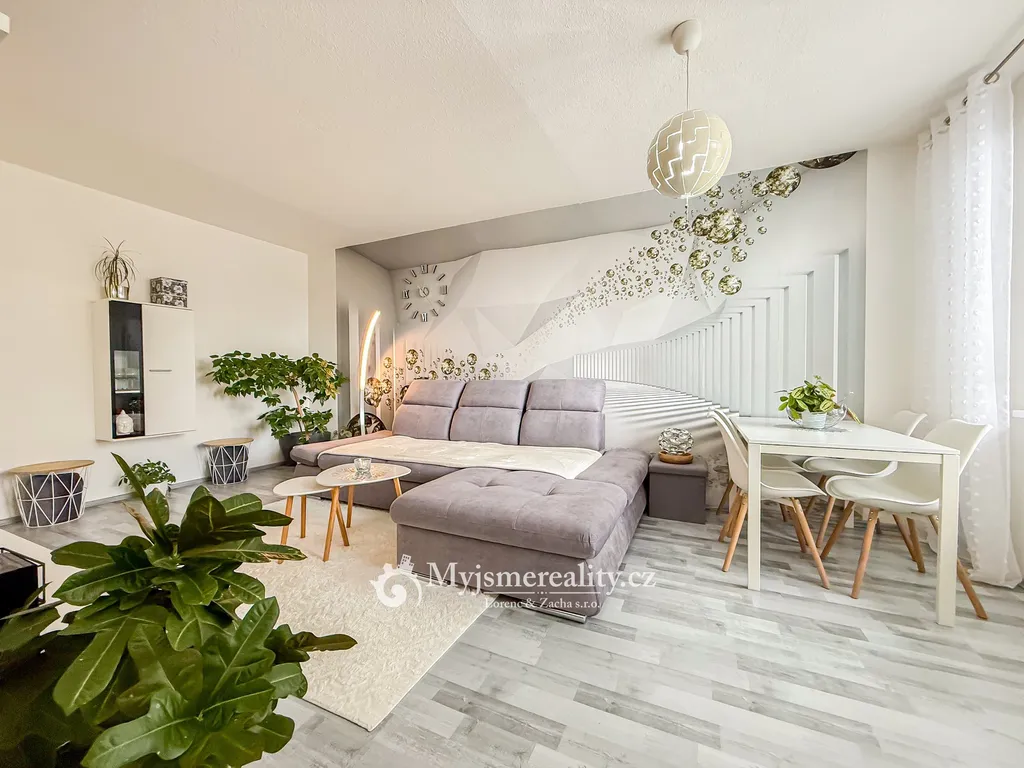 Dispozičně je byt velmi prostorný a slunný. Hned u vstupu vás ochromí velkou vstupní chodbou. Je zde samostatná toaleta a koupelna s vanou a elektrickým žebříkem. Dvě ložnice, jedna krásnější jak druhá a obývací pokoj propojen s kuchyní, která je kompletně vybavená a nabízí spoustu úložného prostoru.