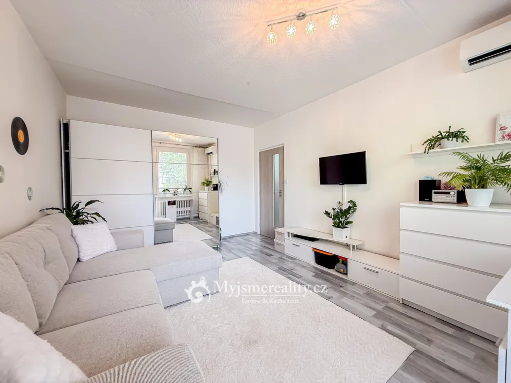 Další přidanou hodnotou tohoto krásného bytu je možnost využití klimatizační jednotky v jednom z pokojů.